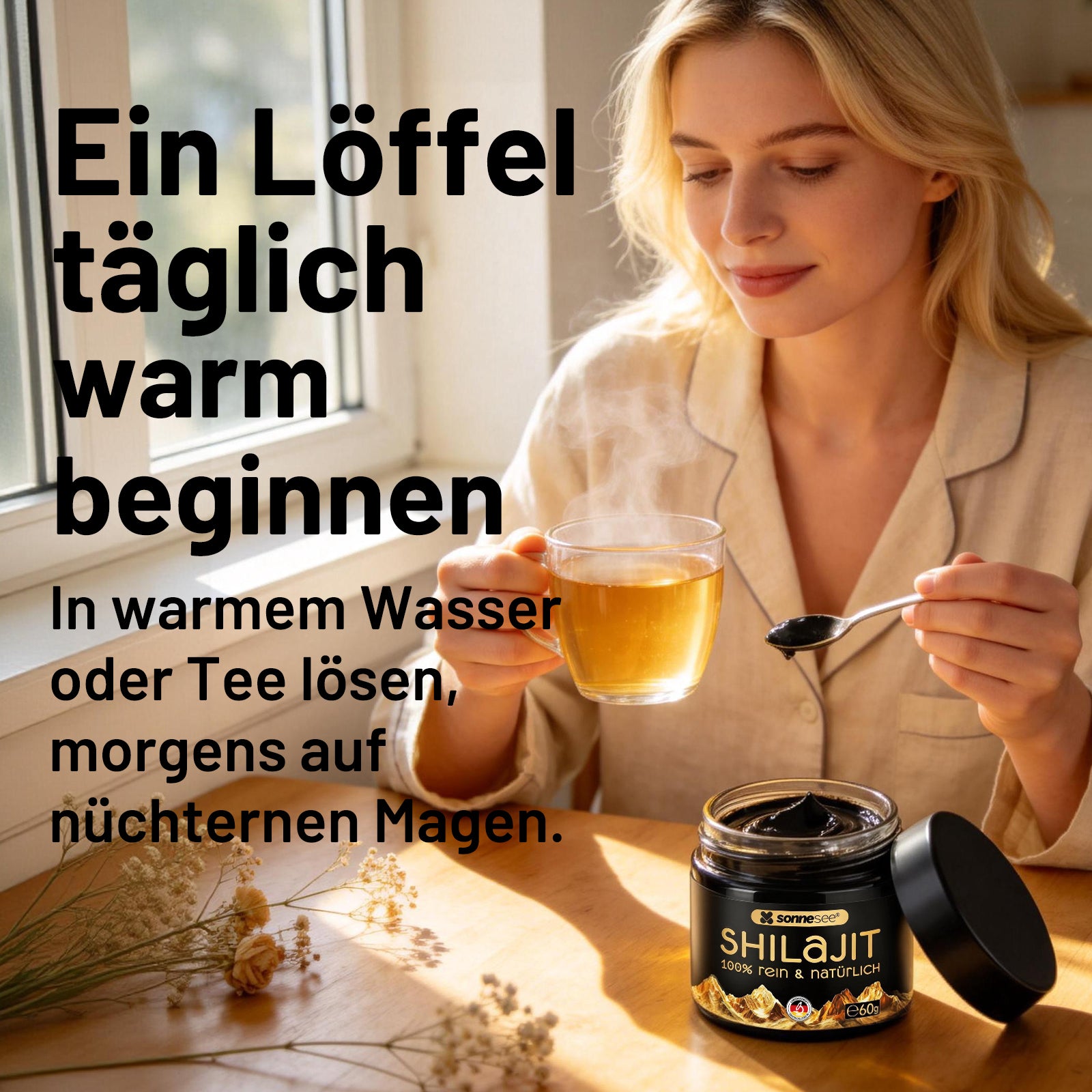 Shilajit ist von Natur aus reich an Mineralien und Fulvinsäure und wird traditionell geschätzt. Ideal für Menschen, die Wert auf natürliche Rohstoffe und eine bewusste tägliche Routine legen.